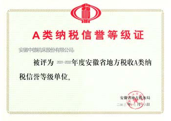 根據(jù)《安徽省地稅系統(tǒng)納稅信譽(yù)等級管理試行辦法》(皖地稅[200]66號)等有關(guān)規(guī)定,稅務(wù)部門按照納稅人申請、主管地稅機(jī)關(guān)對納稅人2001年、2002年及2003年稅務(wù)登記、納稅申報(bào)、稅款繳納、財(cái)務(wù)管理、納稅資料報(bào)送、發(fā)票管理等方面的嚴(yán)格審核,安徽中德機(jī)床股份有限公司被評為:2001—2002年度安徽省地方稅收A類納稅信譽(yù)等級單位!